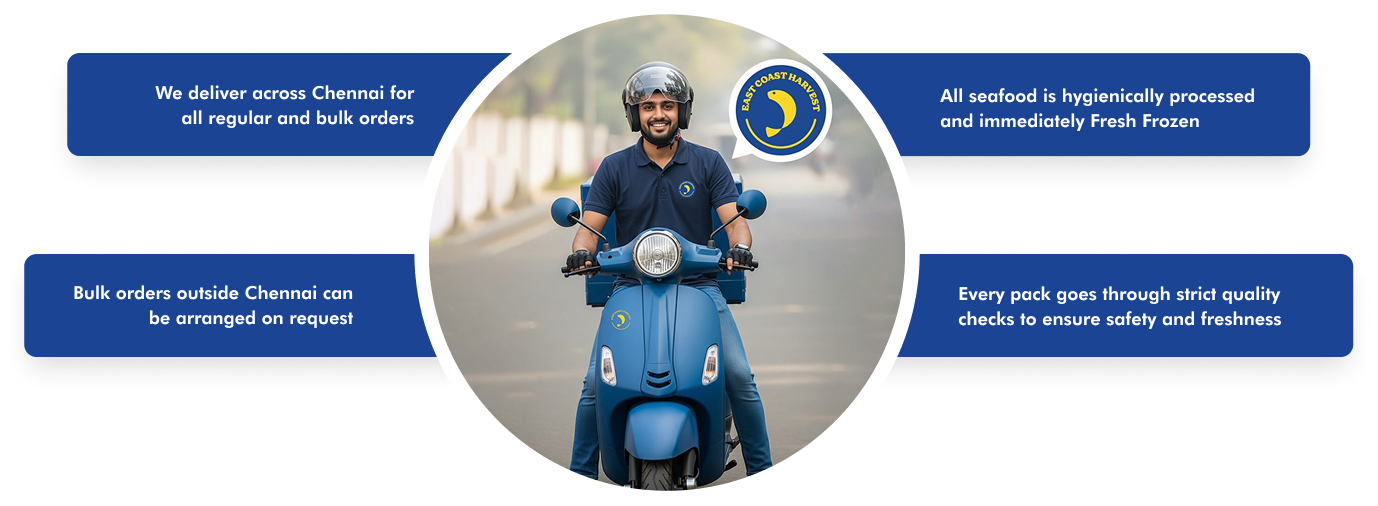 Ordering Fresh Frozen seafood from East Coast Harvest is easy and convenient for customers across Chennai.
